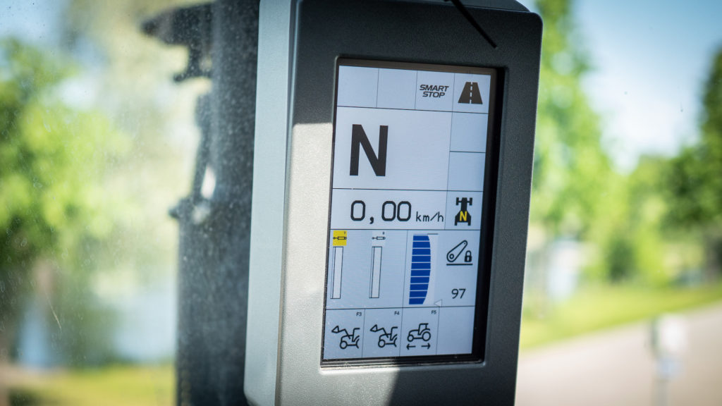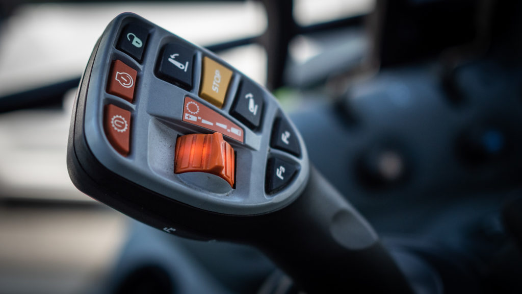– Monitoimi-joystick on tässä myös erittäin hyvä. Tässä on vain yksi joystick, millä saat tehtyä melkein kaikki hommat aina vaihteiden vaihtamisesta etukuormaimen ohjaamiseen, Naumanen kertoo.