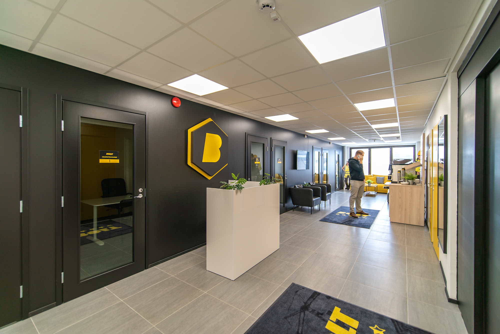 Suomen Monitoimitilojen Pitäjänmäen toimistotilan valintaan vaikutti kokonaisuus – hyvä sijainti sekä mahdollisuus saada juuri Boltin näköiset toimitilat. Tiloja suunniteltiin tiiviissä yhteistyössä arkkitehdin kanssa. Remonttia varten pinnat riisuttiin betonille asti.