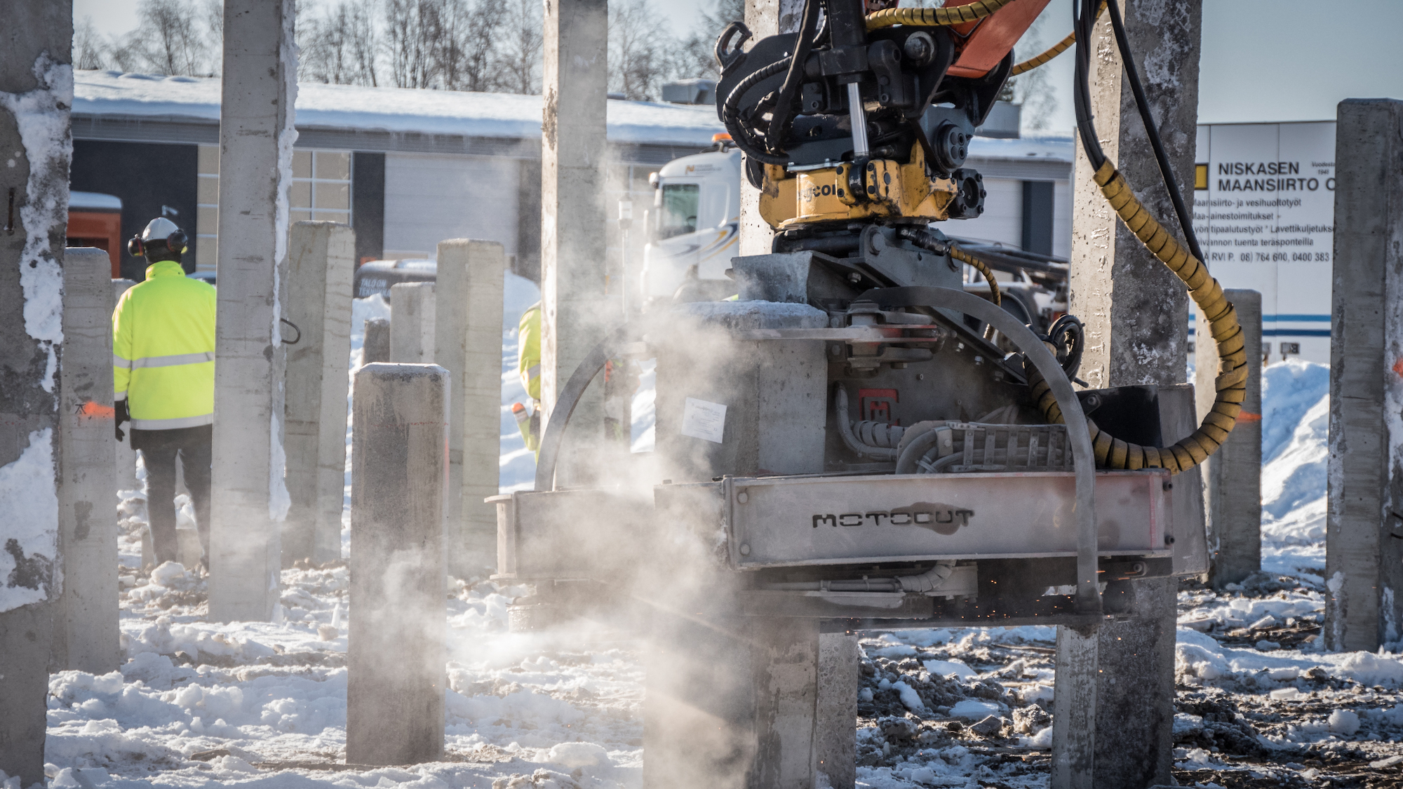 Lue lisääNiskasen Maansiirto Oy on erikoistunut vesihuolto-, maanrakennus- ja lyöntipaalutustöihin sekä kaivannon tuentatöihin. Motocutin katkaisukouran avulla on paalutustyötä saatu tehostettua ja työturvallisuutta parannettua. Katkaisun läpimenoaika pystytään nyt määrittelemään paljon aiempaa tarkemmin samalla kun säästetään katkaisijan niskoja ja käsiä.