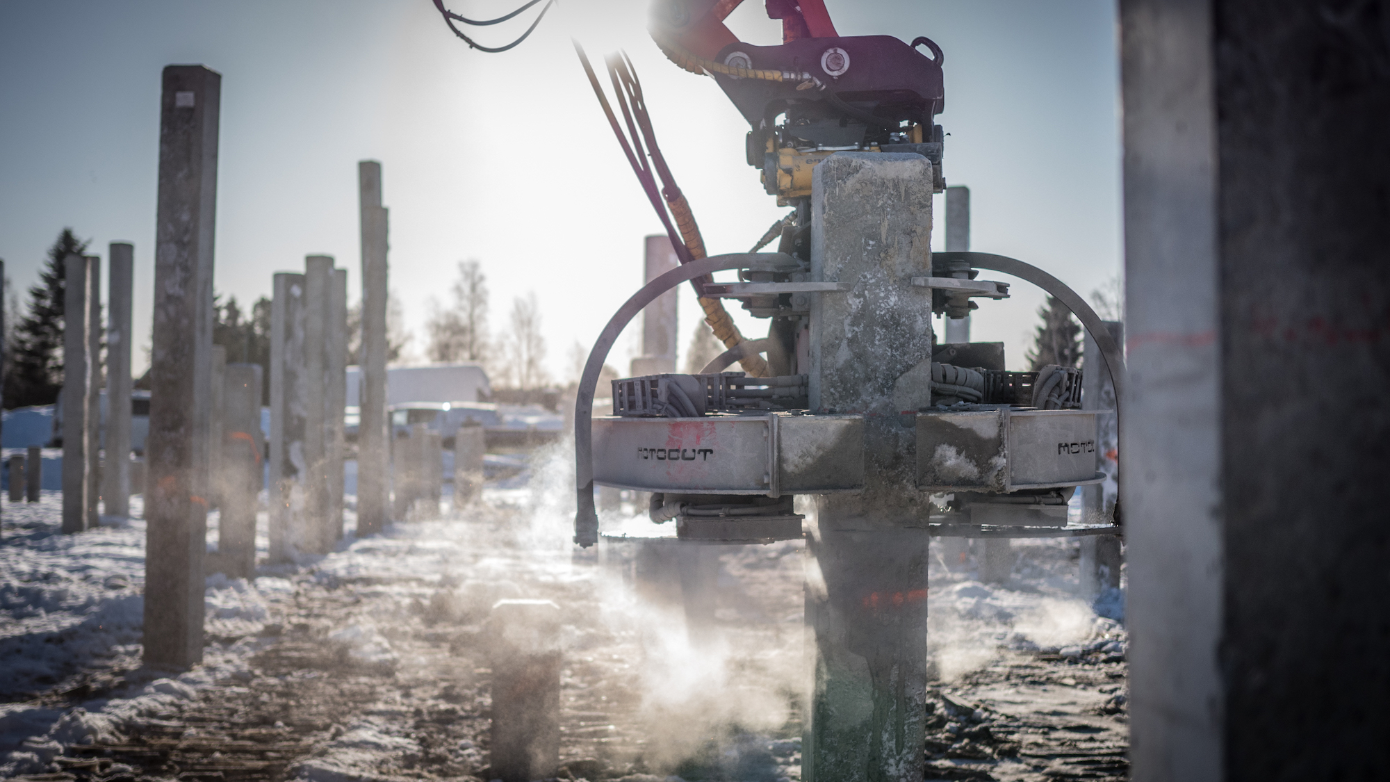– Aiemmin meillä oli ollut hydrauliikkakäyttöinen paalusaha, jota katkaisija piti kädessään koko katkaisun ajan. Se oli fyysisesti hyvin raskasta. Hankinnan merkittävä peruste oli se, että ihmisten terveys riittäisi tähän työhön, Isopahkala perustelee.