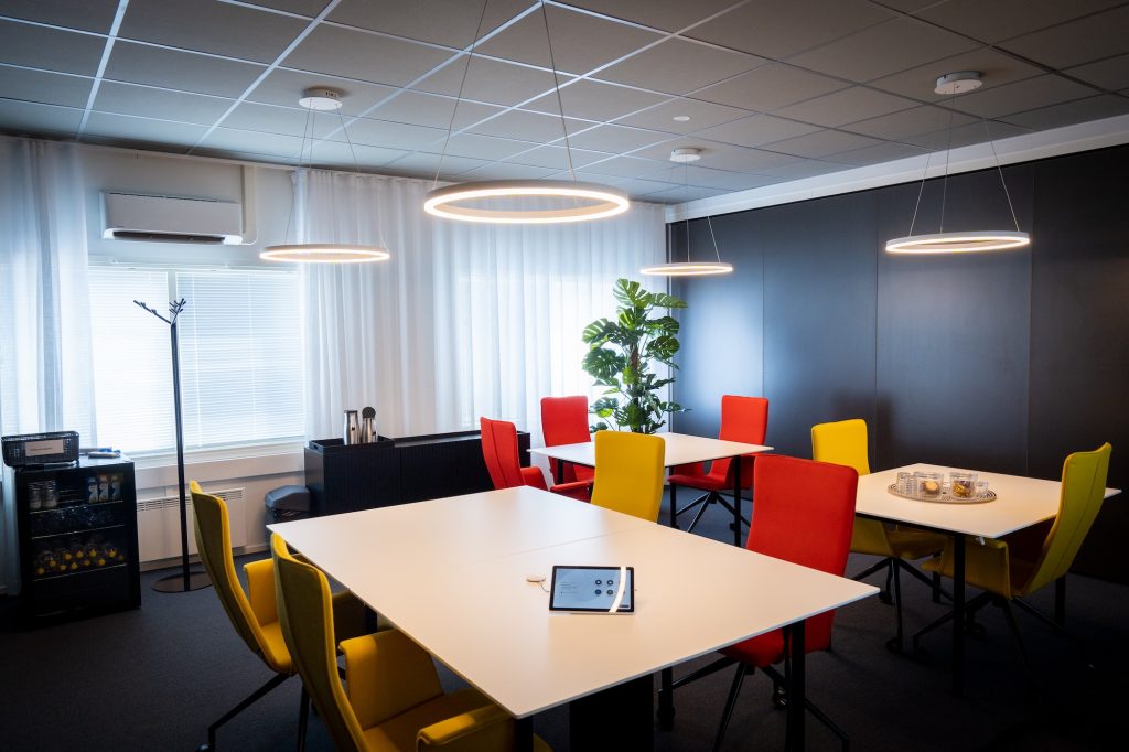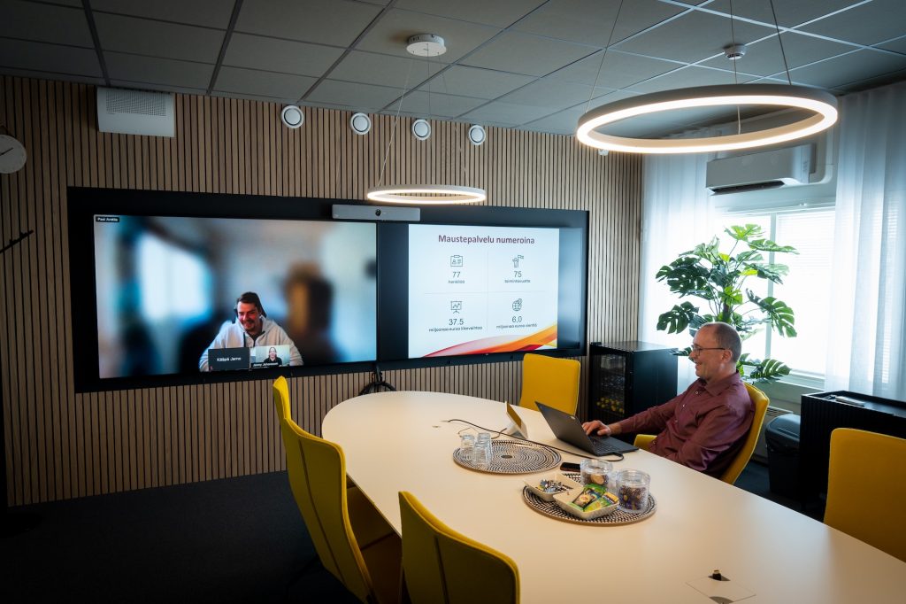 Etäkokoukset ovat yleistyneet ja yritys toteuttaa myös koulutuksia omalle organisaatiolleen, sekä asiakkailleen, joten välillä tarvitaan paljon ihmisiä paikan päälle samaan tilaan ja välillä taas tavataan kameroiden välityksellä.