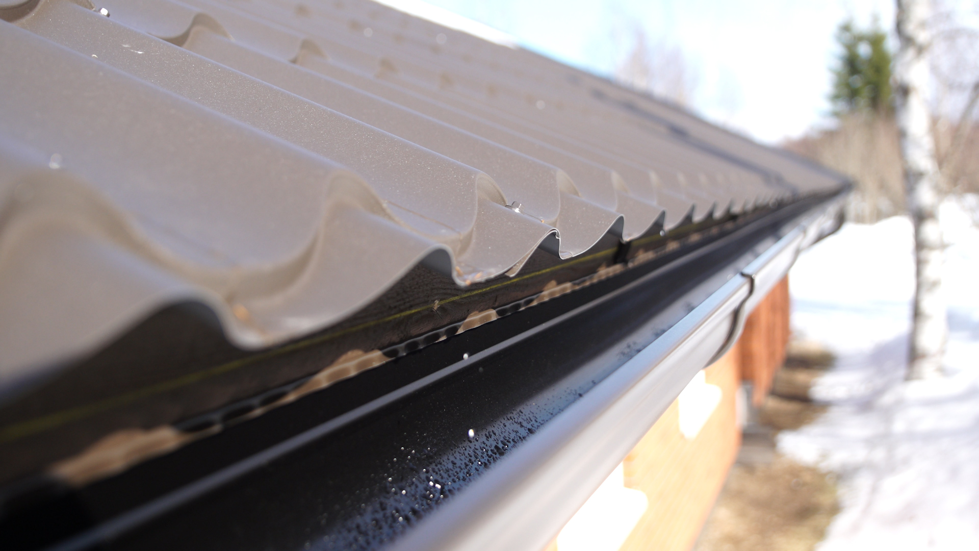 – Tähän tuli nyt Ruukki-nimisen firman polttomaalattu teräspeltikatto. Särmäkodin pojat laittoivat pellityksen ja tarkastivat samalla katon tukirakenteet. Sitten asennettiin sadevesikourut, Jari kertoo.