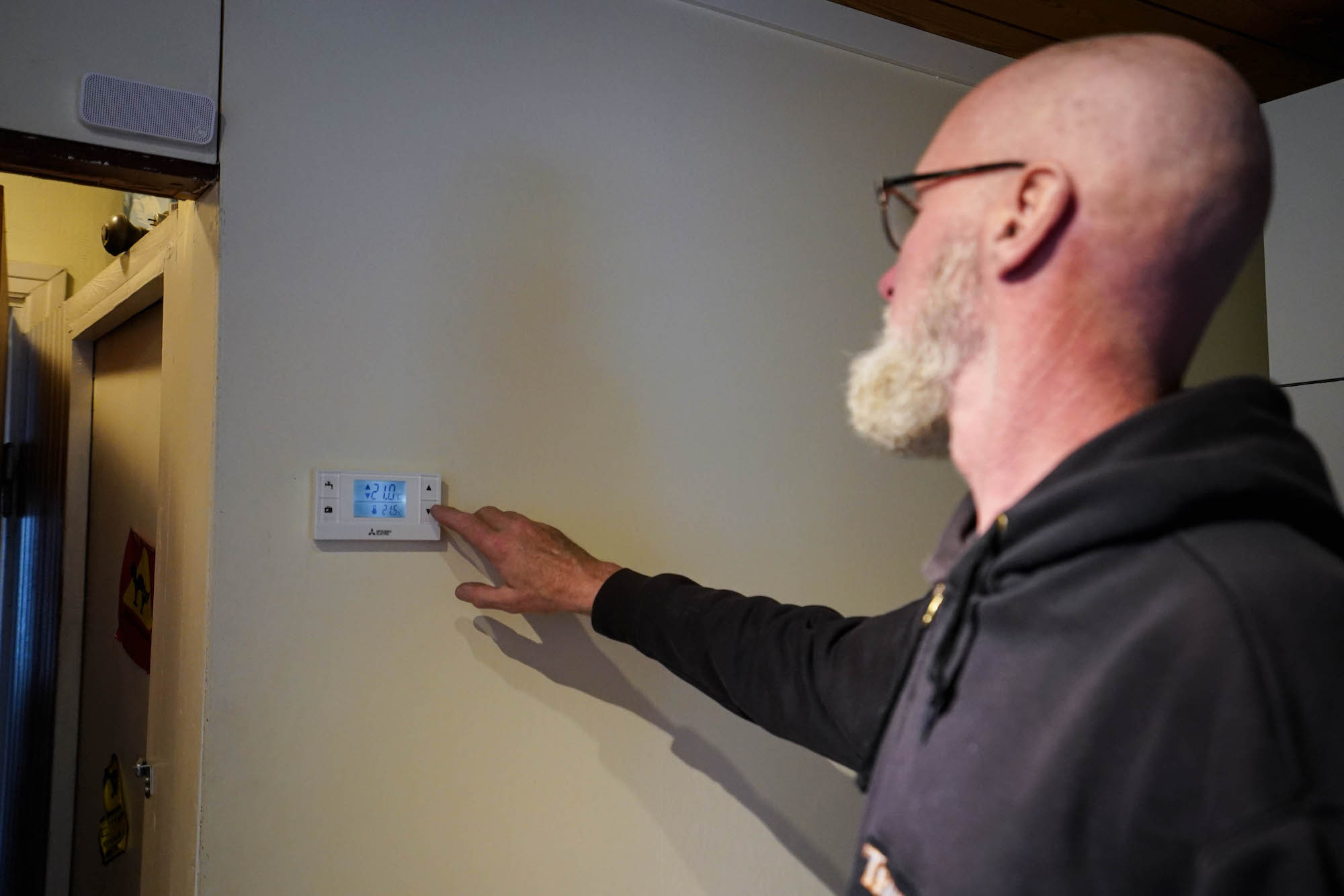 – Sitä on monta vuotta täällä kiroiltu, kun jossain huoneessa on 30 astetta lämmintä ja jossain 15 astetta, eikä lämpötiloja pystynyt säätämään, Jouni muistelee.