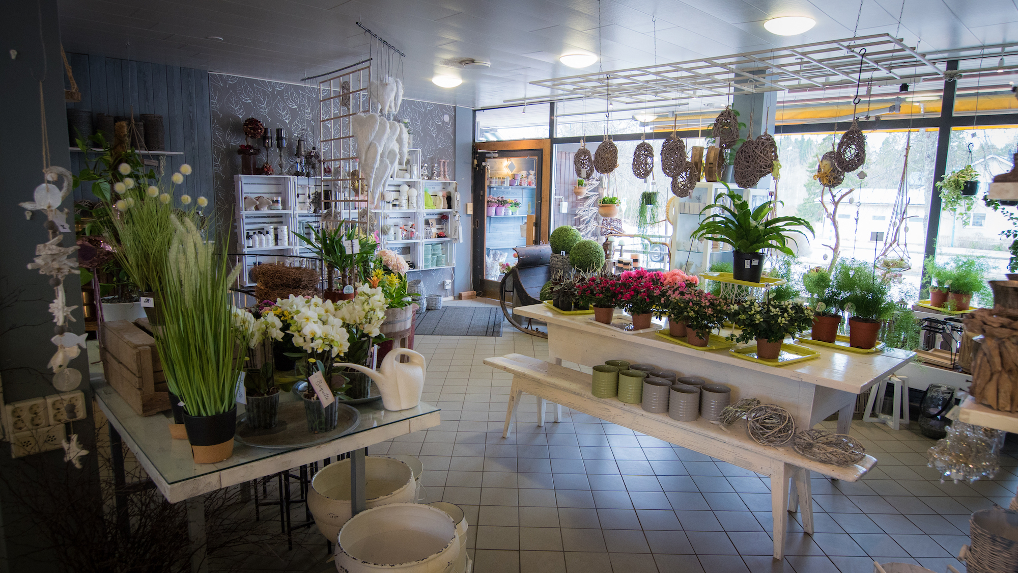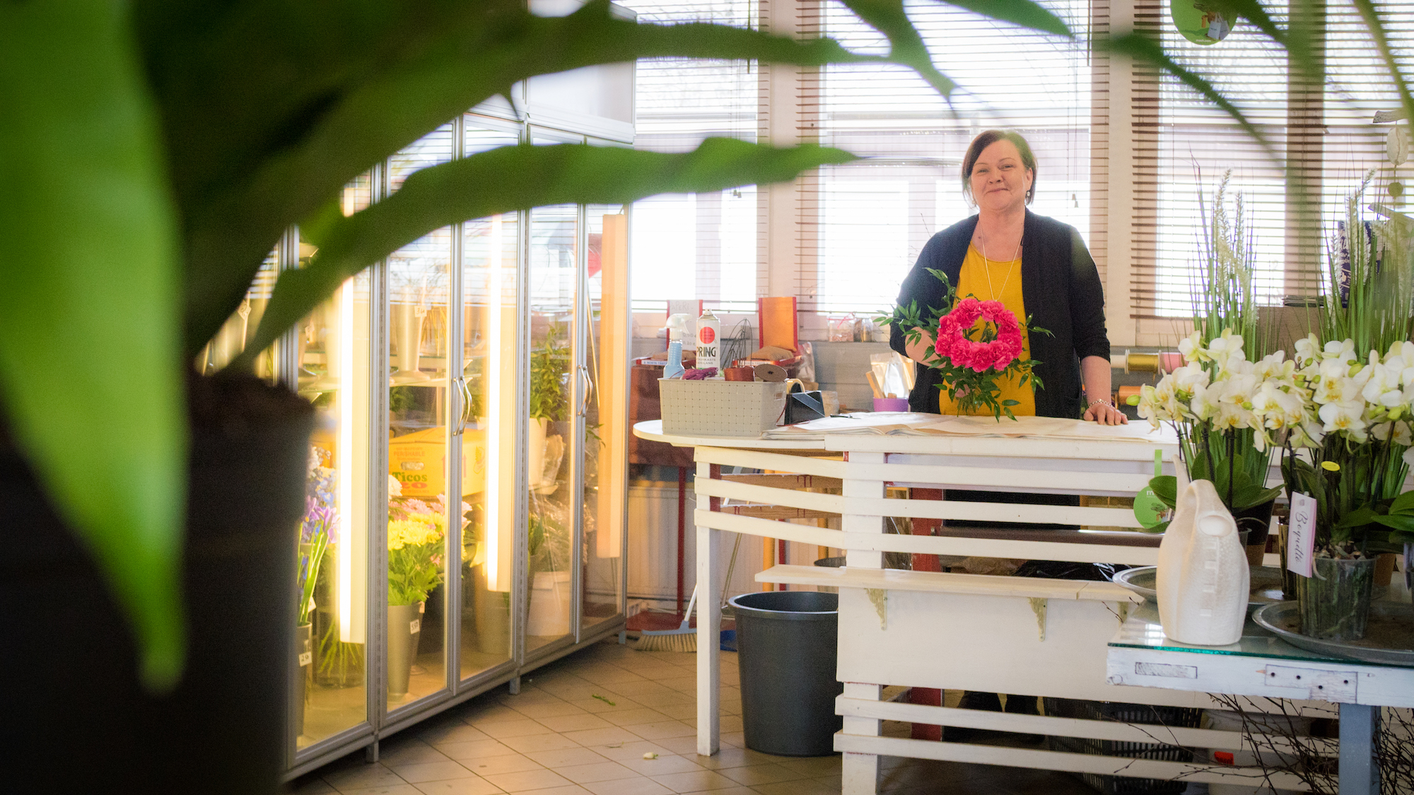 – Kukka- ja hautauspalveluiden lisäksi meillä on lisätuotteena sisustustuotteita ja lahjatavaraa. Toimin tässä aikaisemmin parturina, kunnes opiskelin floristiksi. Nyt minulla on ollut kukkakauppa sellaiset 10 tai 11 vuotta, Haapaniemi summaa.
