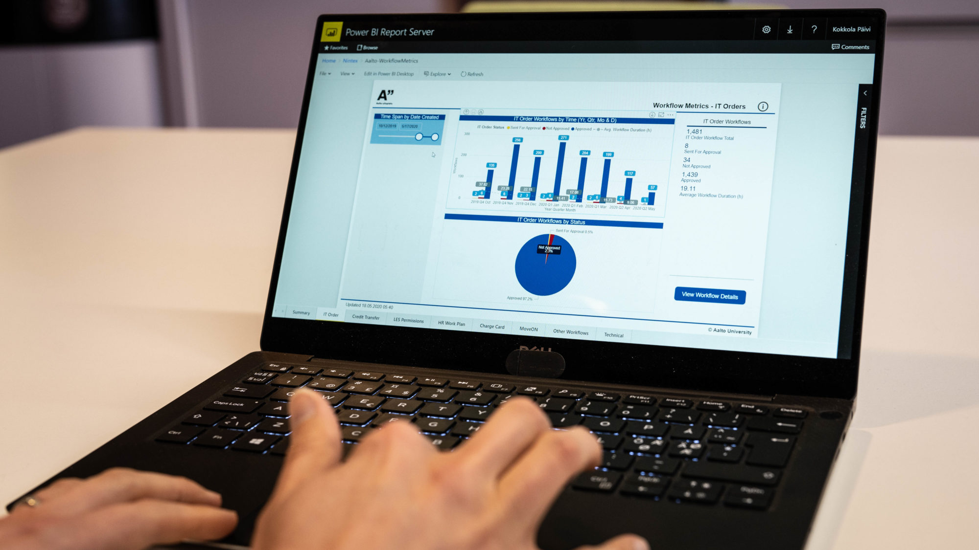 Työnkulku tarkoittaa käytännössä erilaisia hakemusprosesseja eri tahojen välillä sekä niiden hyväksytyksiä. Työnkulkujen digitalisoimisesta voi käytännössä hyötyä jokainen Aalto-yliopiston 11 200 opiskelijasta sekä 4 400 työntekijästä. Opiskelijat voivat esimerkiksi hyväksilukea muualla suoritettuja opintoja digitaalisesti ja henkilöstö voi tilata IT-laitteita ilman perinteistä paperiviidakkoa. Vuosittain Aalto-yliopistolla ajetaan pelkästään IT-hankinnoissa 2700 työnkulkua. Muutos aiempaan on merkittävä.