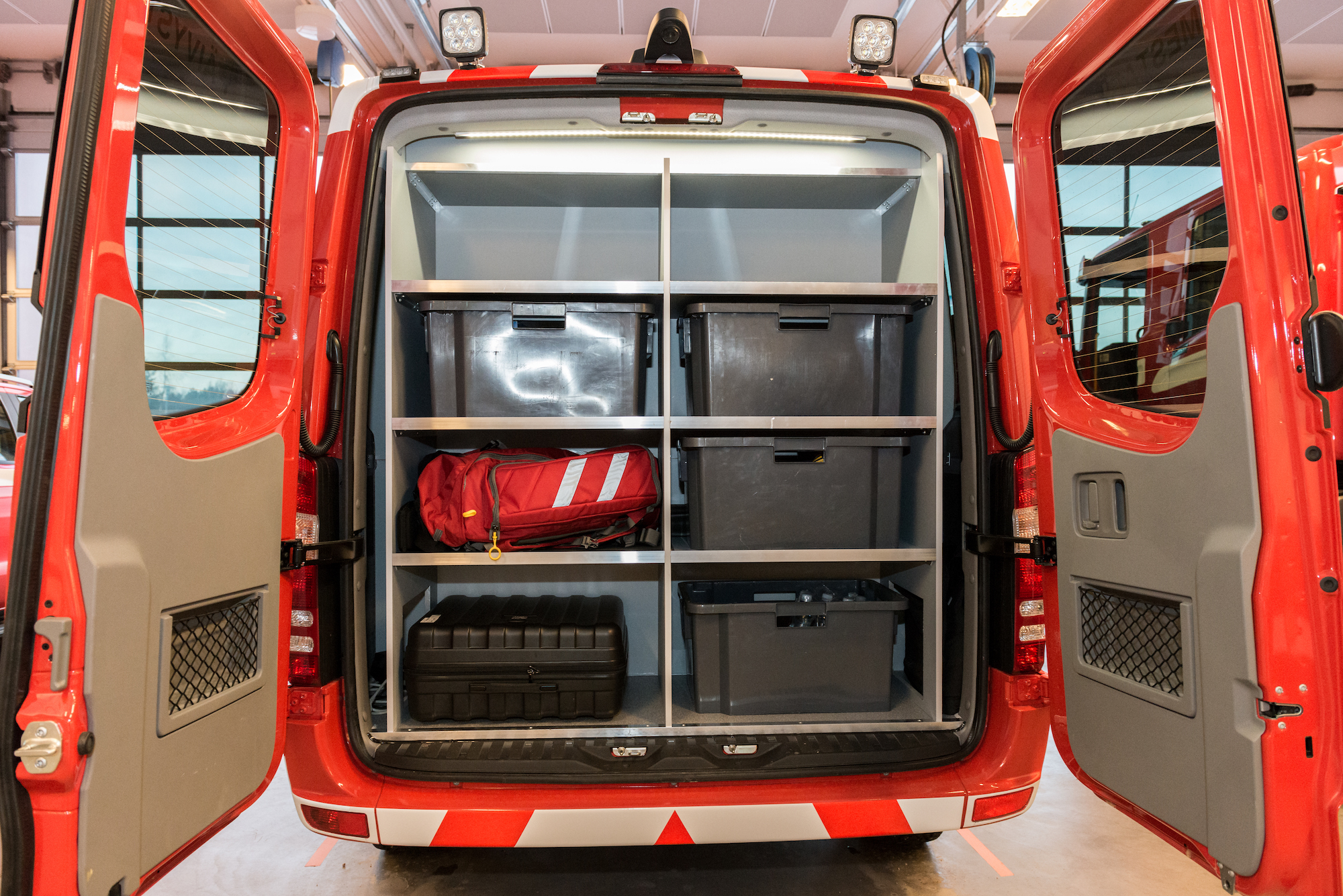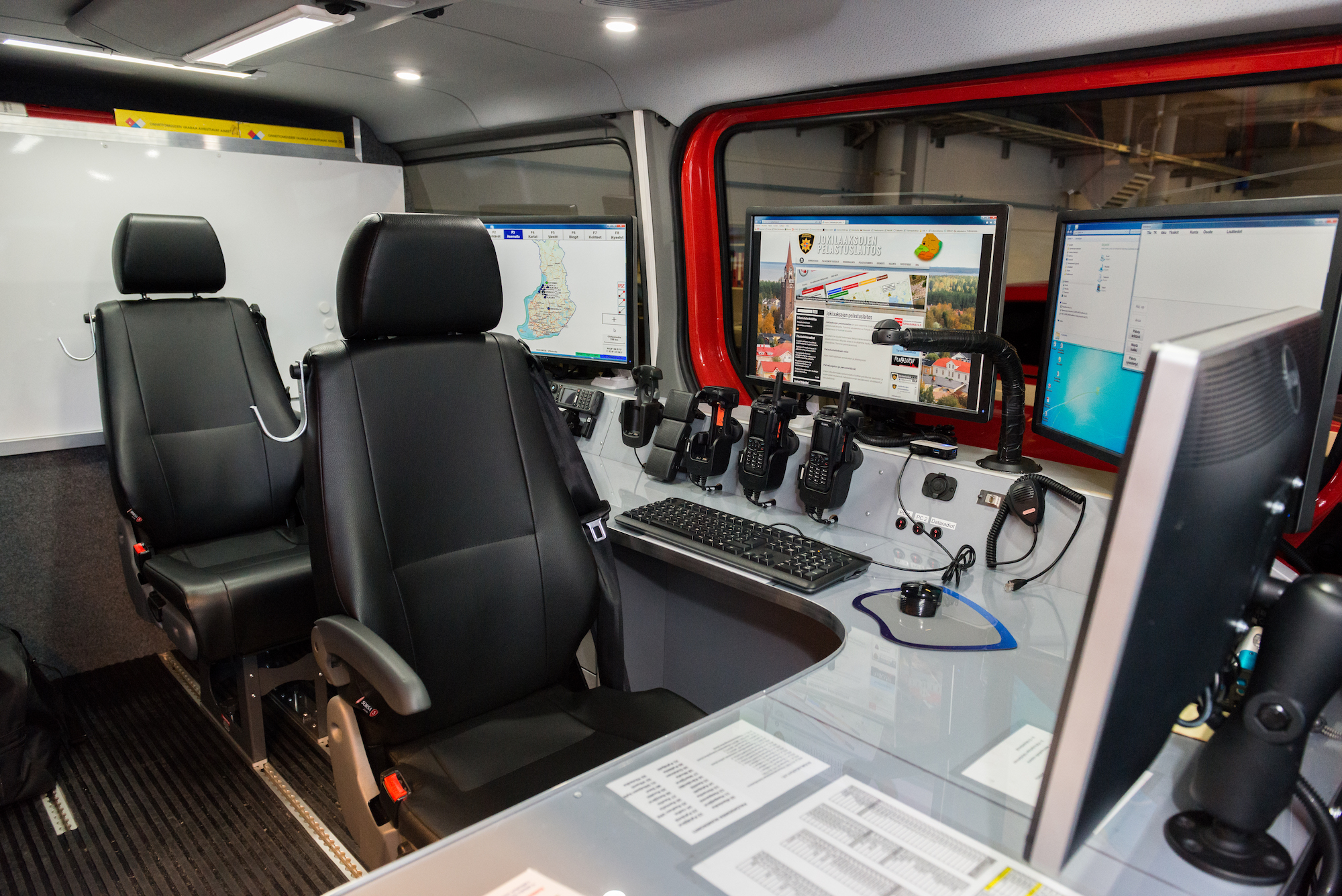 – Joulukuun alkupuolella teimme välikatselmuksen ja kävimme yhdessä läpi muutamia sijoitteluja lähinnä tietoteknisen varustelun osalta. Verhoomo Sorsa järjesti autoon osan pelastustoiminnan johtamiseen liittyvän välineistöstä. Osan laitteista toimitimme itse. Olimme tyytyväisiä palveluun ja prosessin etenemiseen. Kokonaisuutta on kehuttava, Matti kiittää.